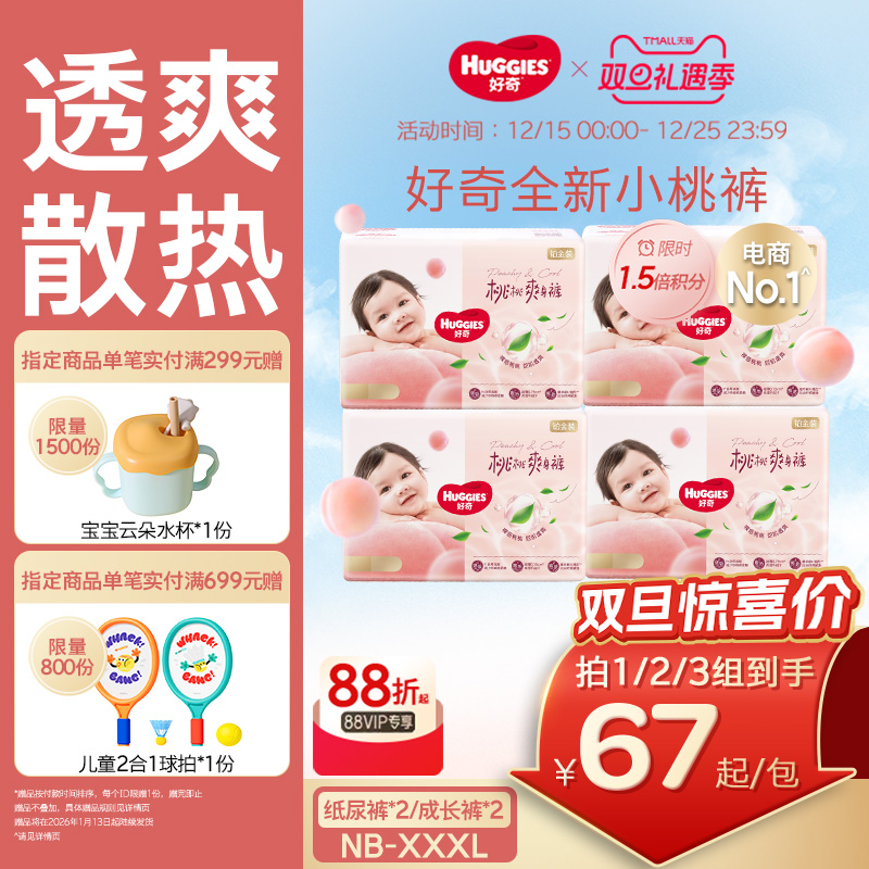 【透爽散热】好奇铂金装小桃裤纸尿裤NB-XXL拉拉裤L-3XL尿不湿