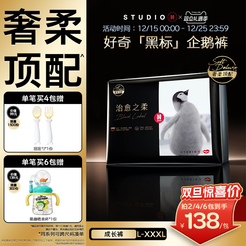 好奇官方奢柔顶配治愈之柔黑标小企鹅裤拉拉裤L-XXXL纸尿裤柔软