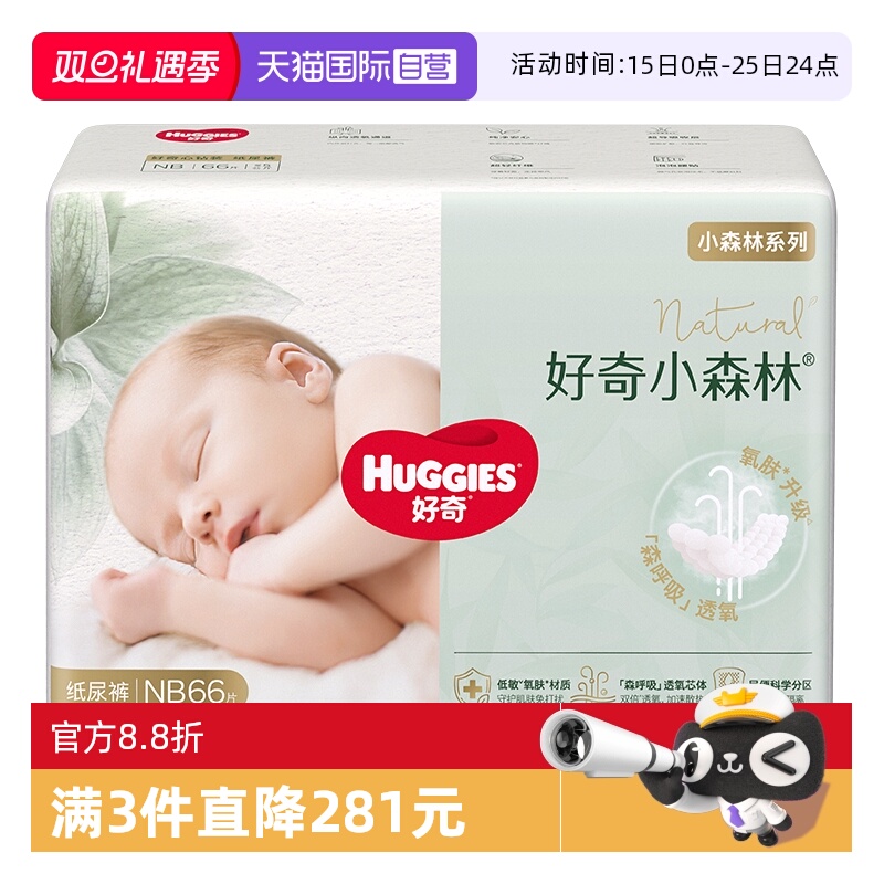 【自营】HUGGIES/好奇官方小森林心钻婴儿纸尿裤拉拉透氧更低敏
