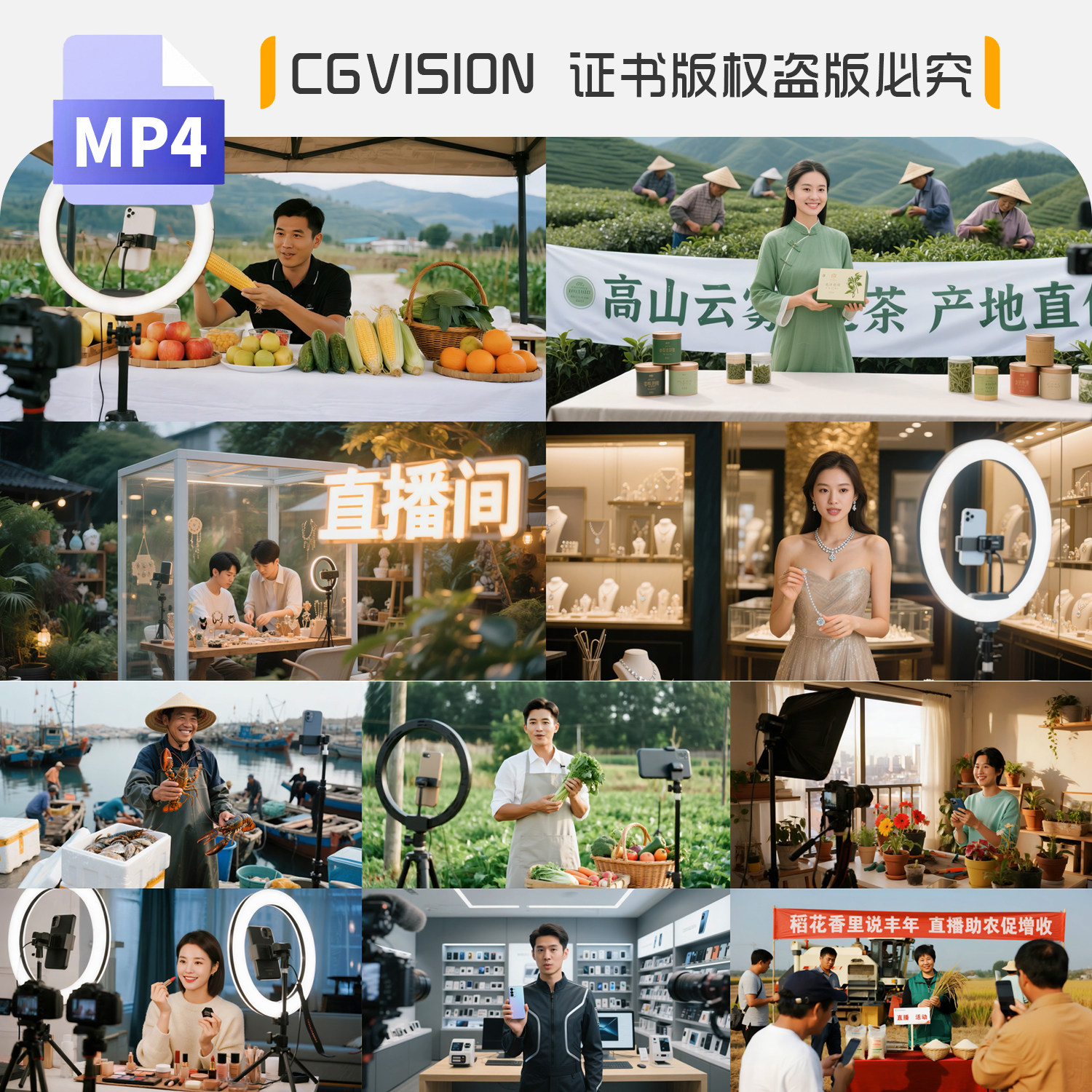 网红主播直播间电商卖货户外助农直播带货种草网络销售ai视频素材