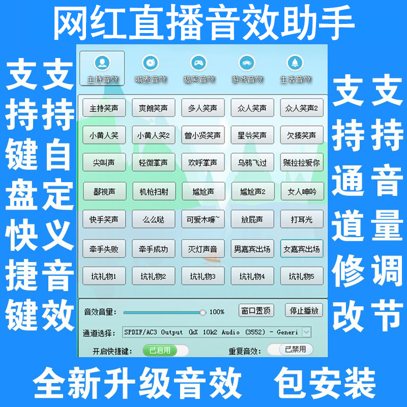 网络主播直播音效软件主持人音效助手笑声搞笑掌声效果器辅助配音