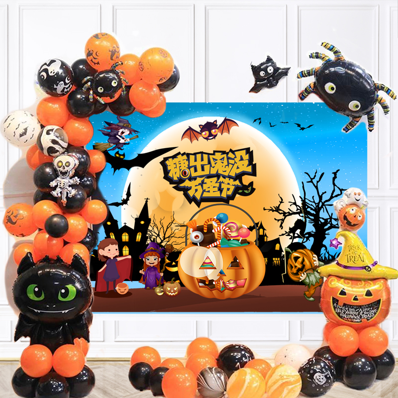 万圣节派对装饰背景布南瓜气球场景装扮布置学校室内网络直播主播