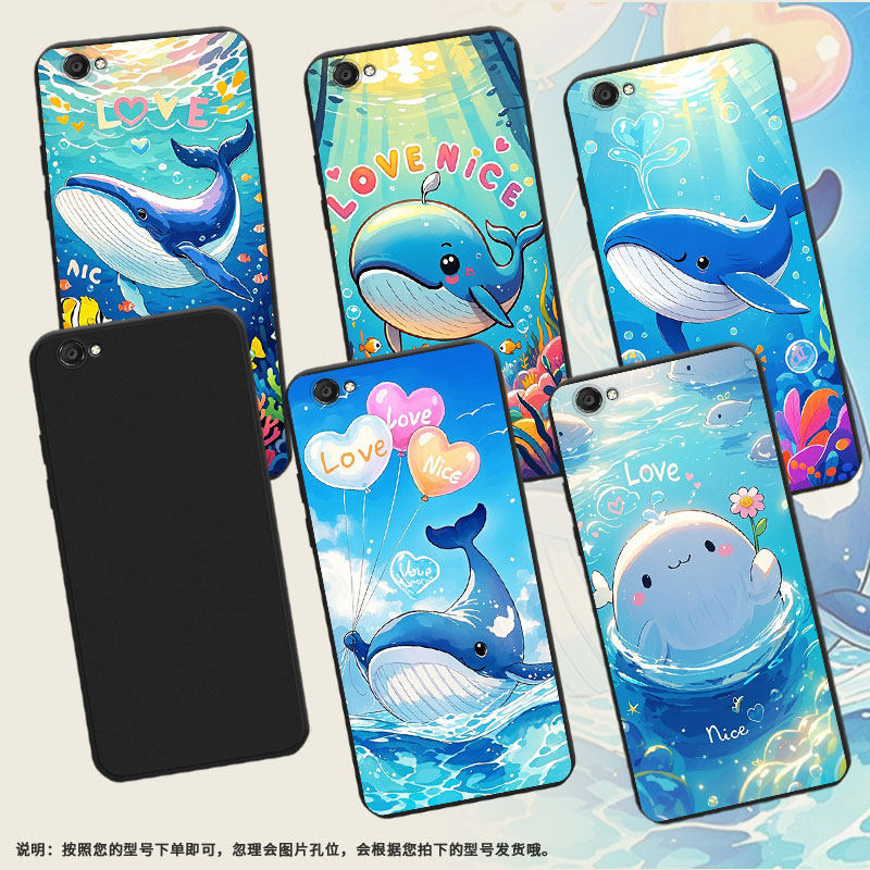 适用vivoY67L手机壳全包边商务vivoV5时尚磨砂壳vivoY66男女款vivoZ1Pro超薄防摔潮流喷水鲸鱼个性保护套
