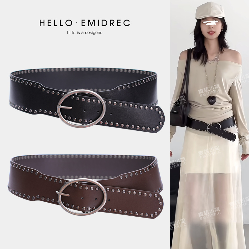 美式复古腰带女装饰配裙子毛衣大衣铆钉皮带牛仔裤宽腰封2025新款