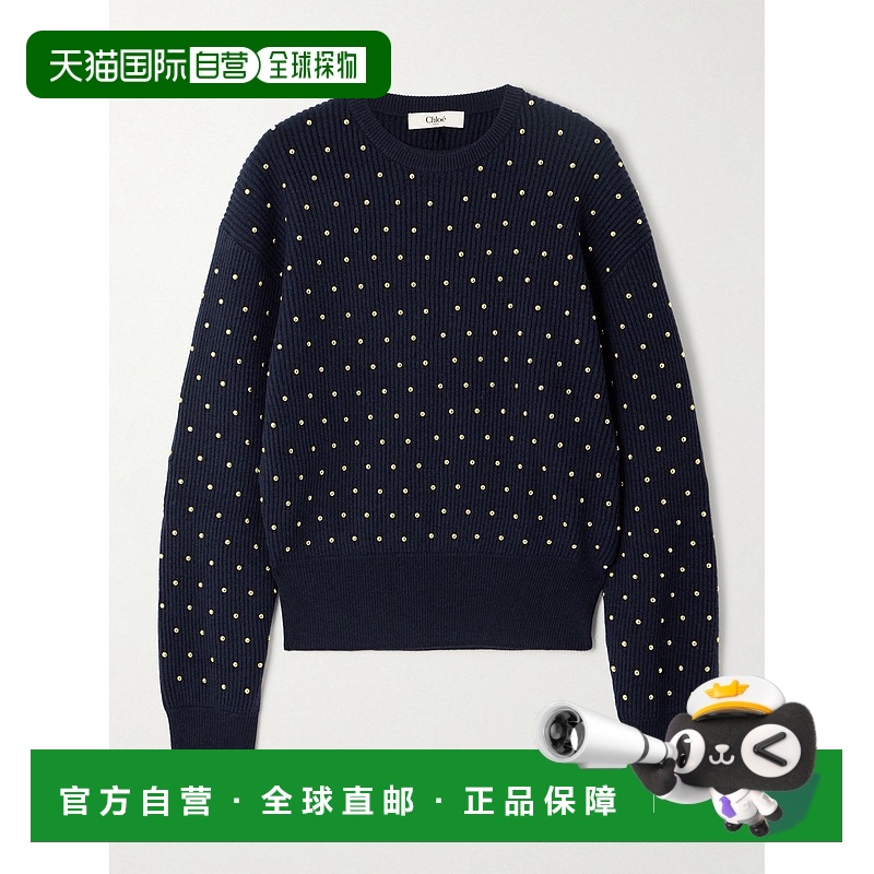 1h可退 香港直邮Chloe 蔻依 女士 铆钉罗纹羊毛羊绒混纺毛衣 CH25