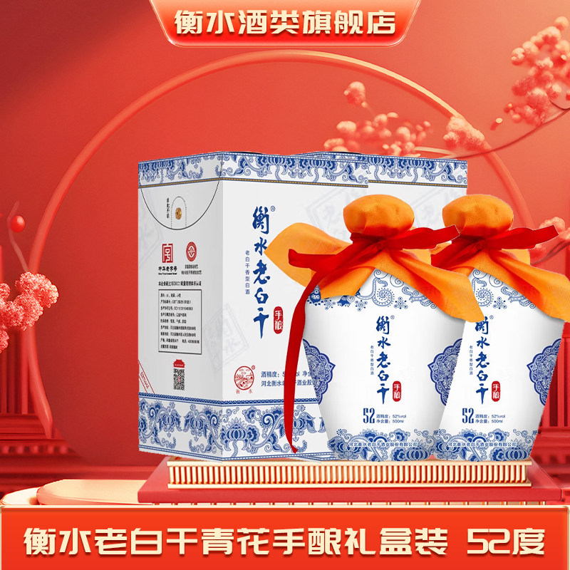 衡水老白干白酒青花手酿52度纯粮白酒口粮酒装国产白酒送礼2瓶