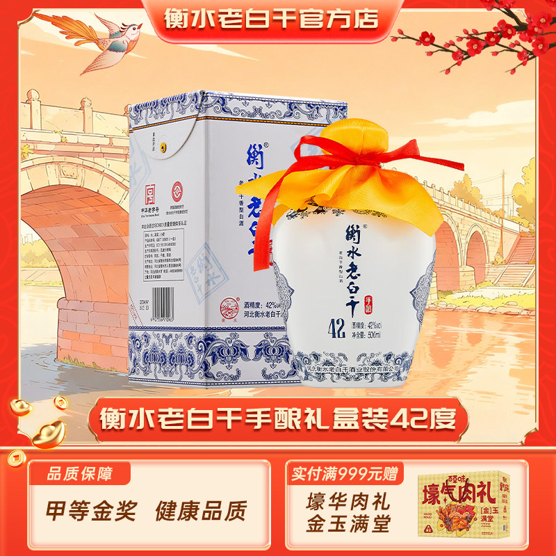 衡水老白干 手酿礼盒白酒 伴手礼42度500ml*4瓶 整箱装 口粮白酒