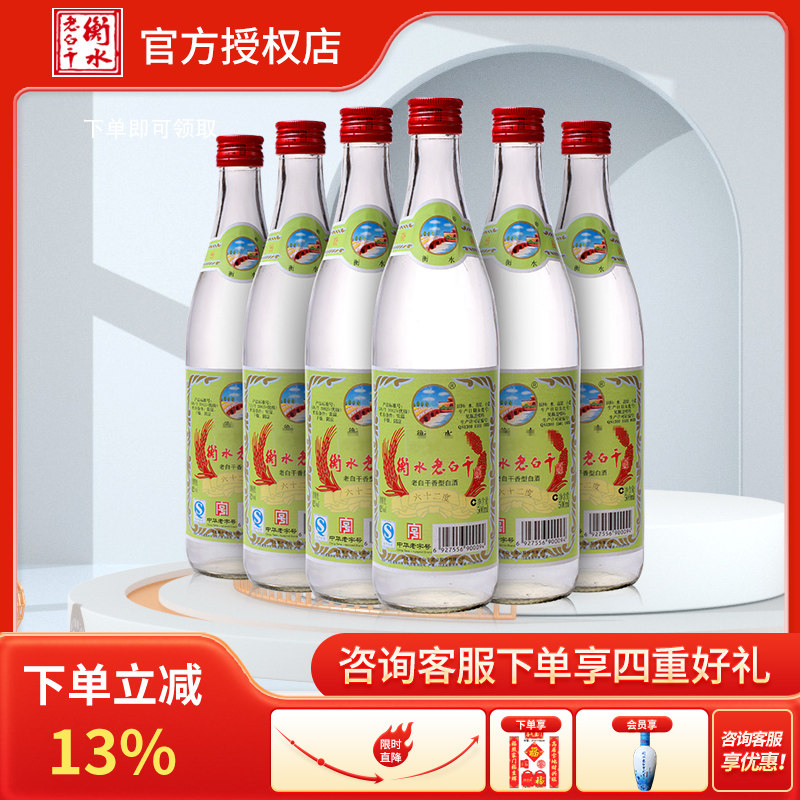 衡水老白干白酒酒水62度绿标500ml*6瓶高度酒 裸瓶自饮 酒厂直供