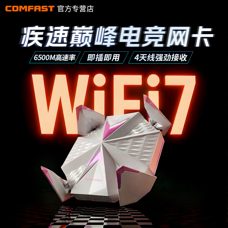 COMFAST免驱WiFi7电竞无线网卡台式机接收器笔记本电脑外置高速大功率usb网卡6500M千兆5g三频网络CF-988BE
