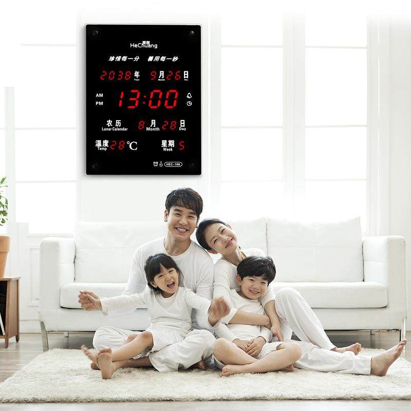 LED钟数码电子万历大屏装饰墙年挂钟钟时竖版HEC-188客厅HEC188