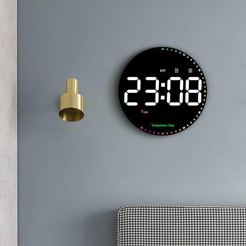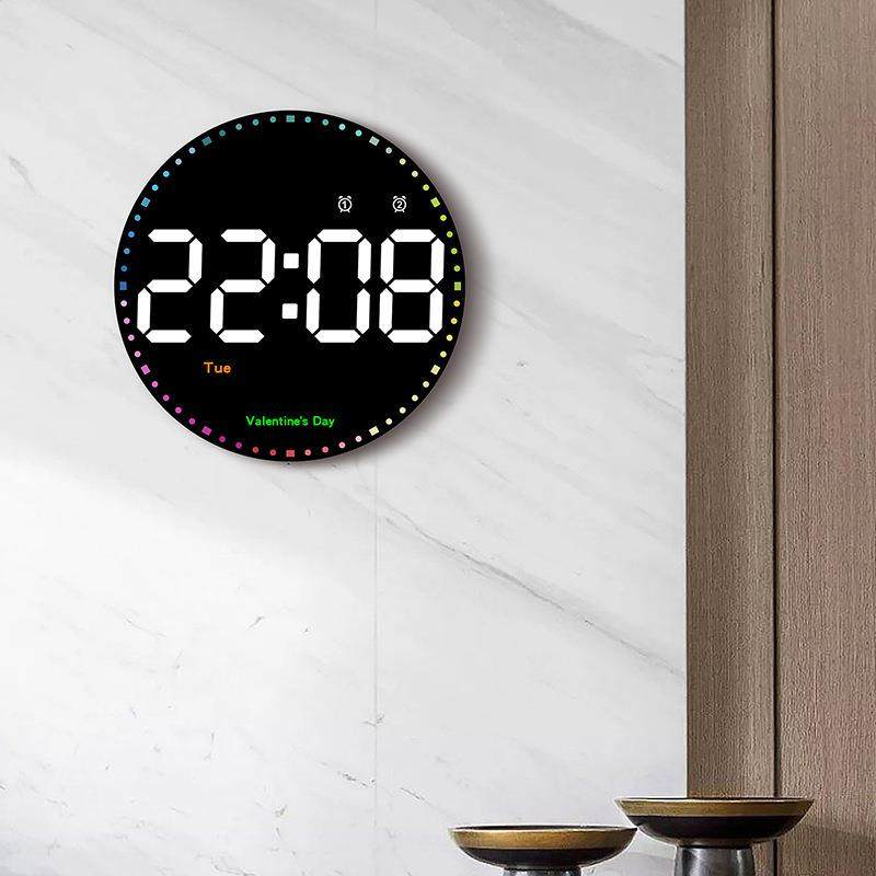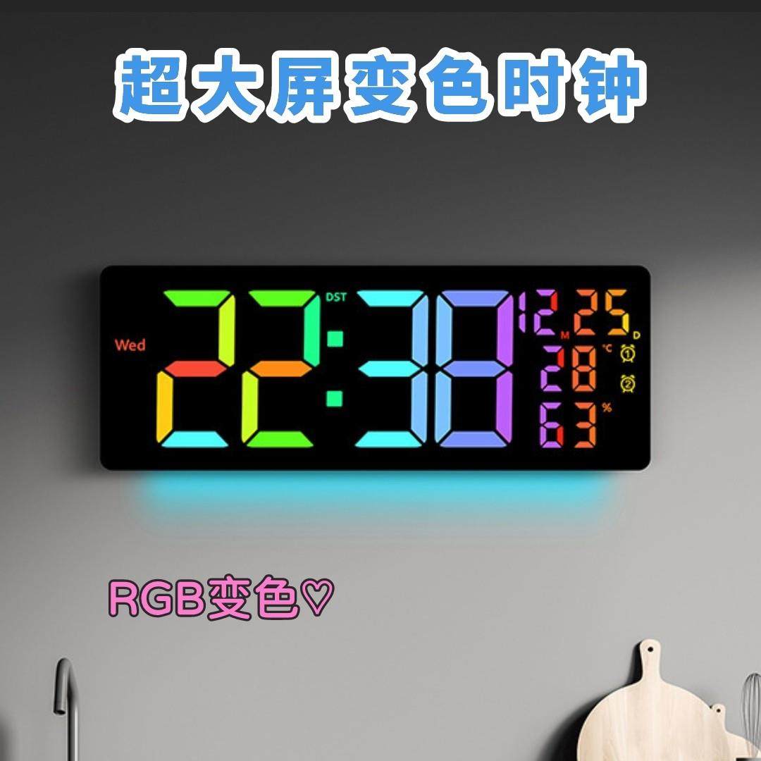 新款简约大字体客厅数字电子挂钟夜光温湿度RGB幻彩创意七彩led钟