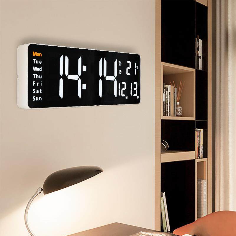 跨境LED钟电子钟万年历客厅电子挂钟闹钟CLOC时钟钟表壁挂式时尚