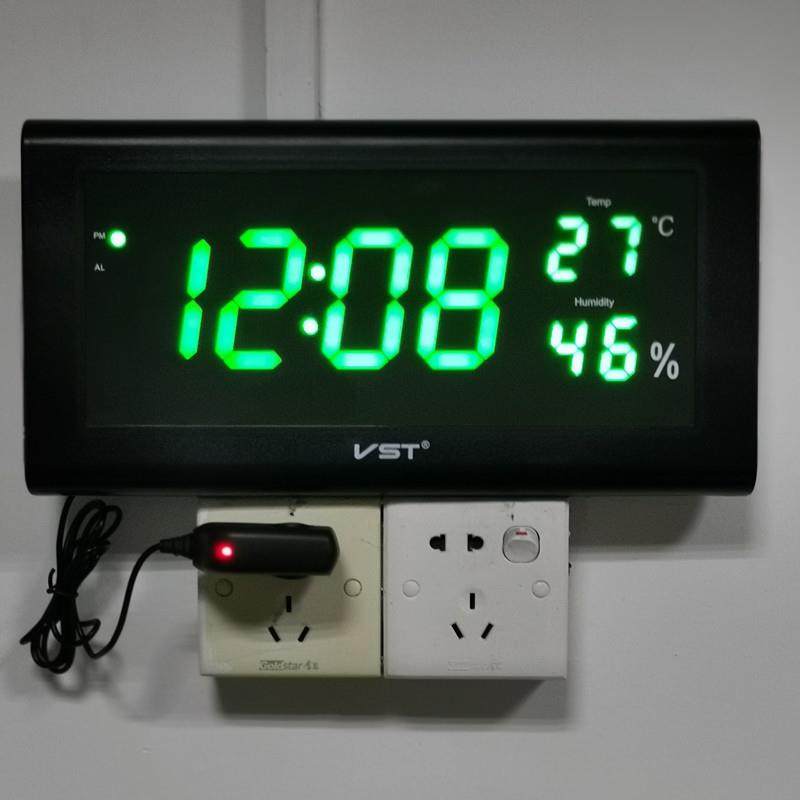 台挂用LED钟子LED温湿度显计挂钟数钟两大VST795S字插电发光电钟