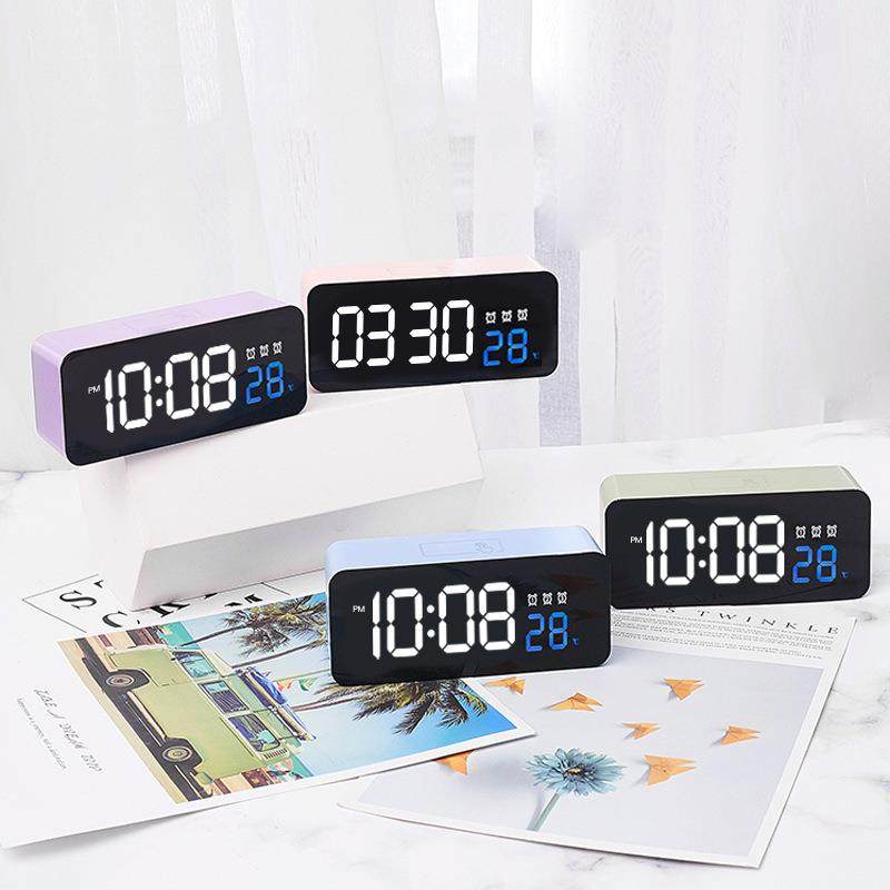 夜光镜面时钟ins风静音数字电子钟简约学生桌面智能多功能led钟表