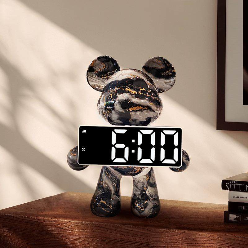 新款直销网红水转印卡通暴力熊时钟led钟表摆件电视柜酒柜装饰品