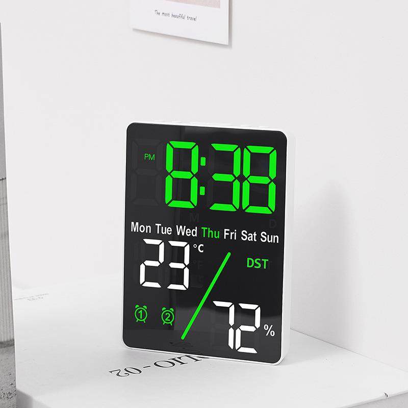 时尚LED创意闹钟 夜光静音电子表学生床头钟卧室座钟台钟温湿度计