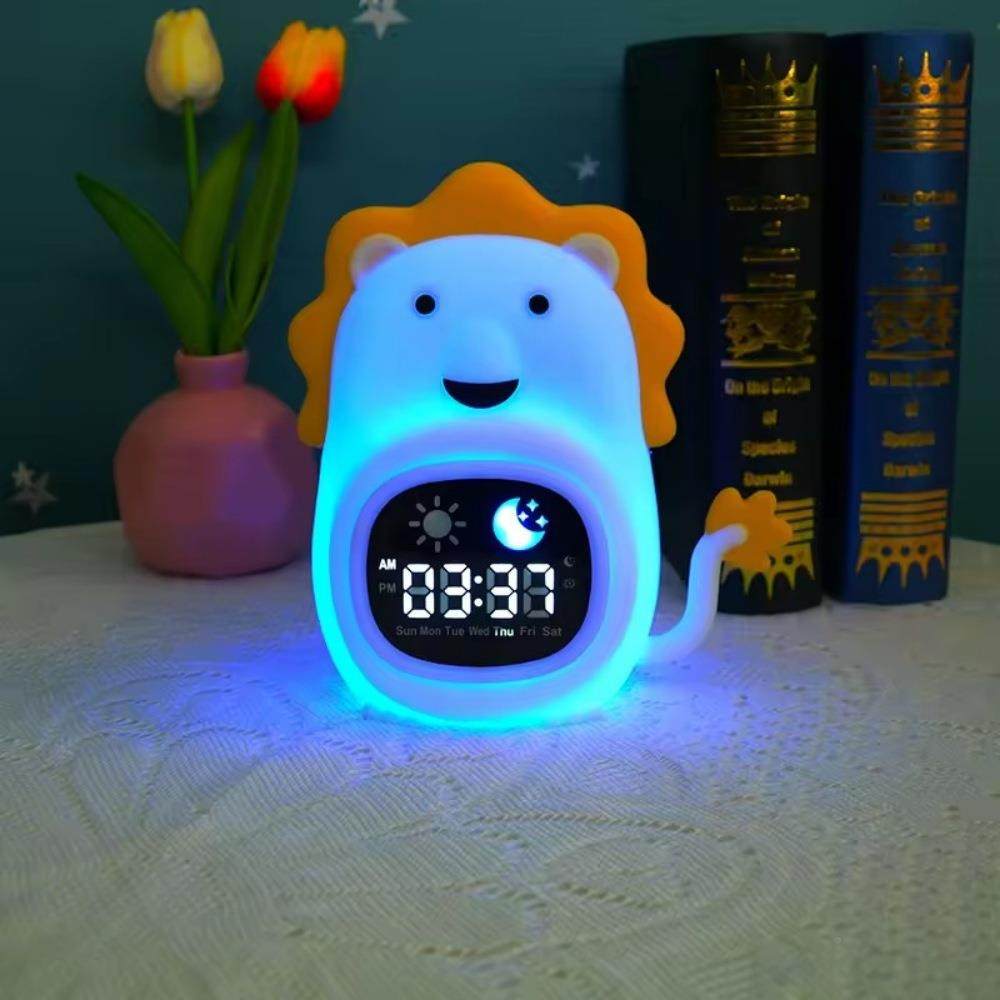 新款太月亮子智狮能闹钟白燥音焕醒电子时床头卡通LED钟小阳狮子