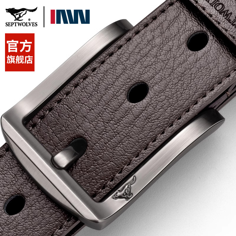 七匹狼真皮皮带 男士牛皮针扣时尚腰带 韩版休闲加宽裤带商务正品