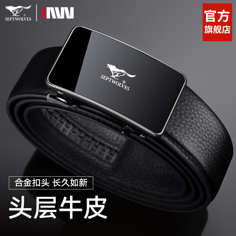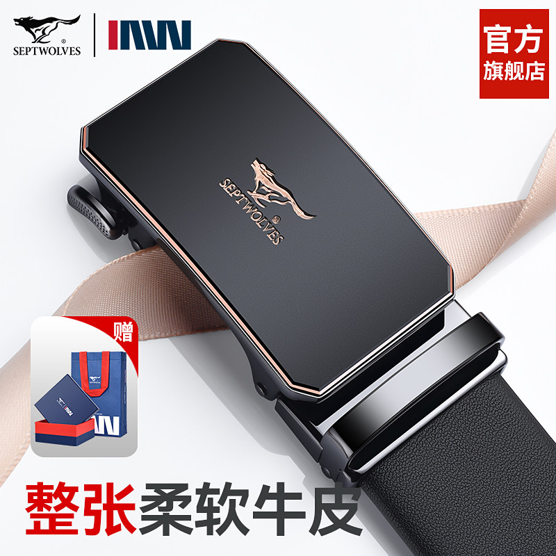 七匹狼真皮皮带男士腰带男式新款潮流牛皮商务时尚个性自动扣裤带