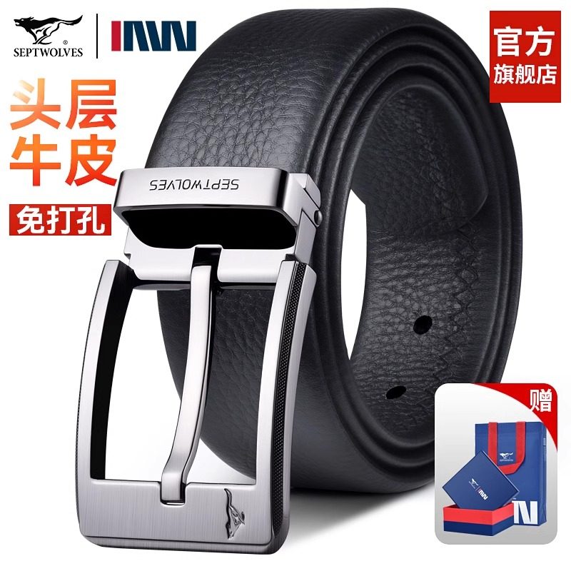 七匹狼男士皮带头层牛皮商务针扣腰带2025新款真皮高档男款裤带