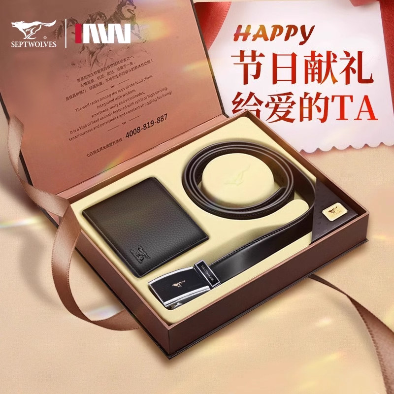 七匹狼钱包皮带生日礼盒真皮腰带父亲节套装男高档圣诞节礼物实用