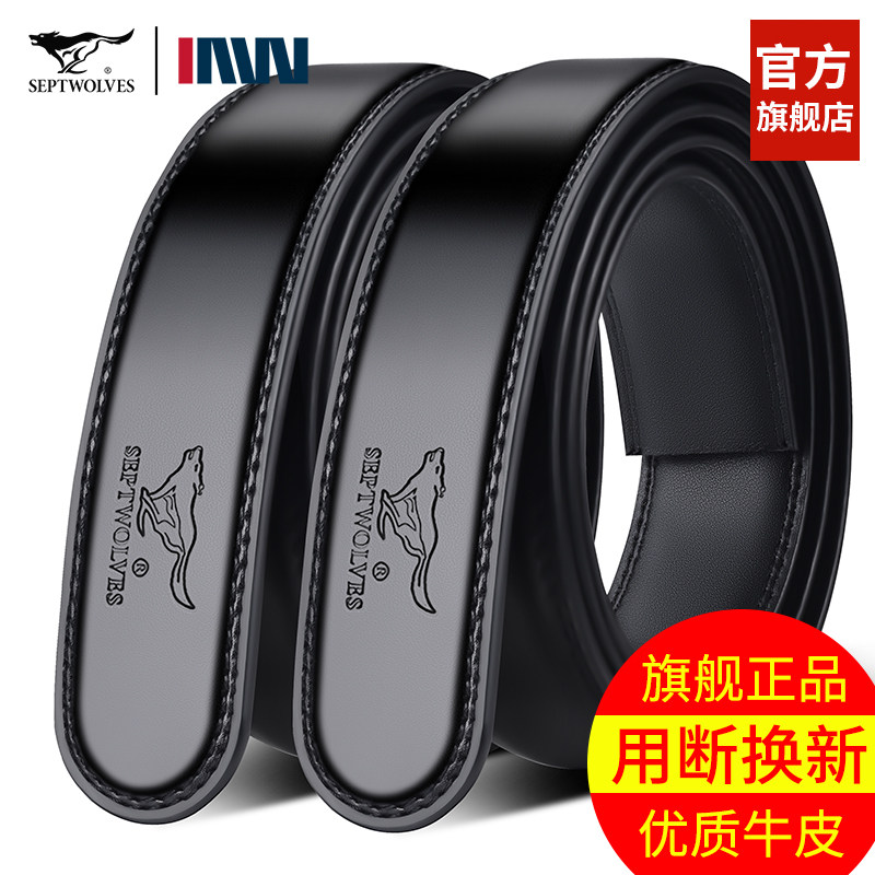 七匹狼无头皮带男士真皮腰带不带头自动扣裤带牛皮百搭带身无扣头