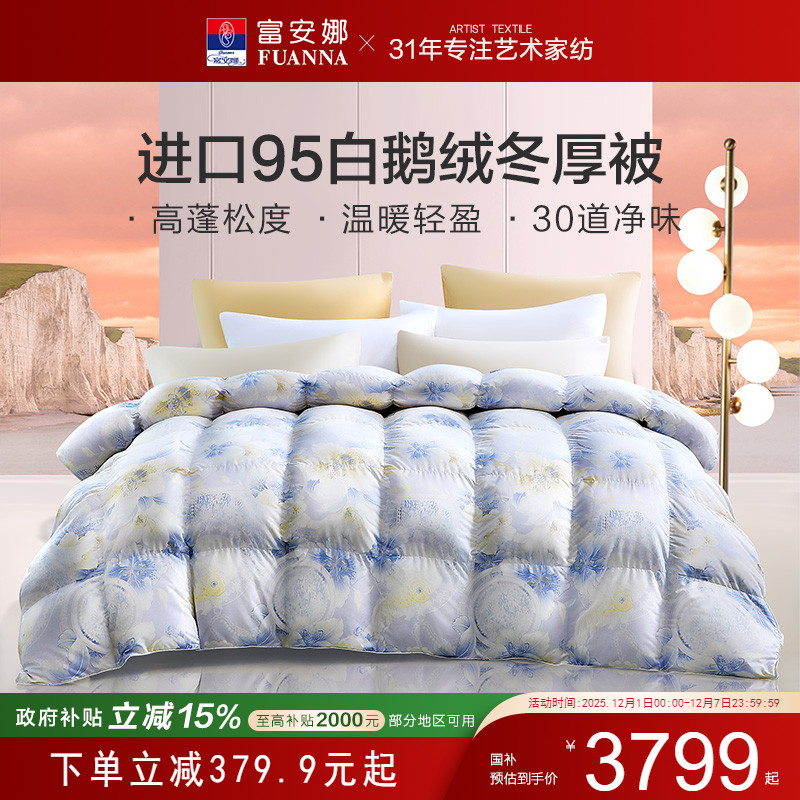 富安娜家纺羽绒被乌克兰进口95白鹅绒被子保暖冬被加厚冬季厚被芯