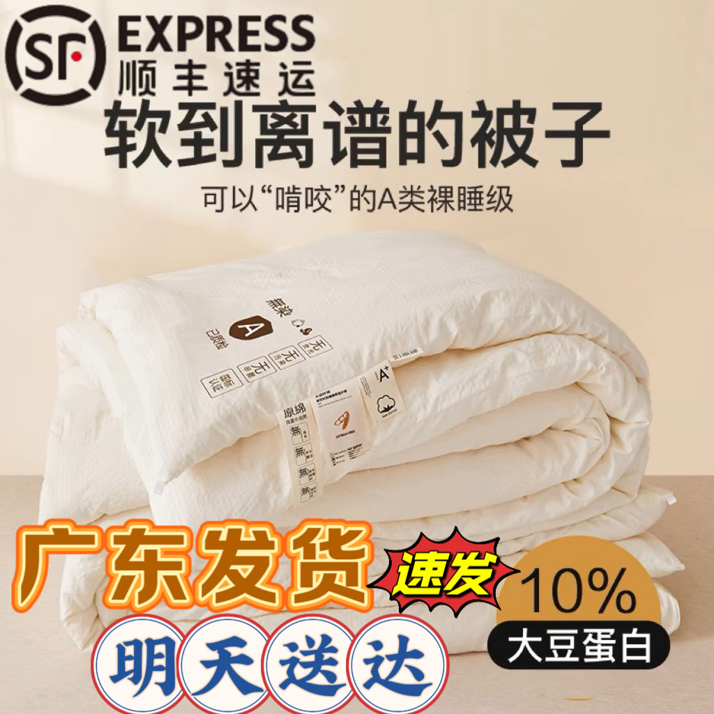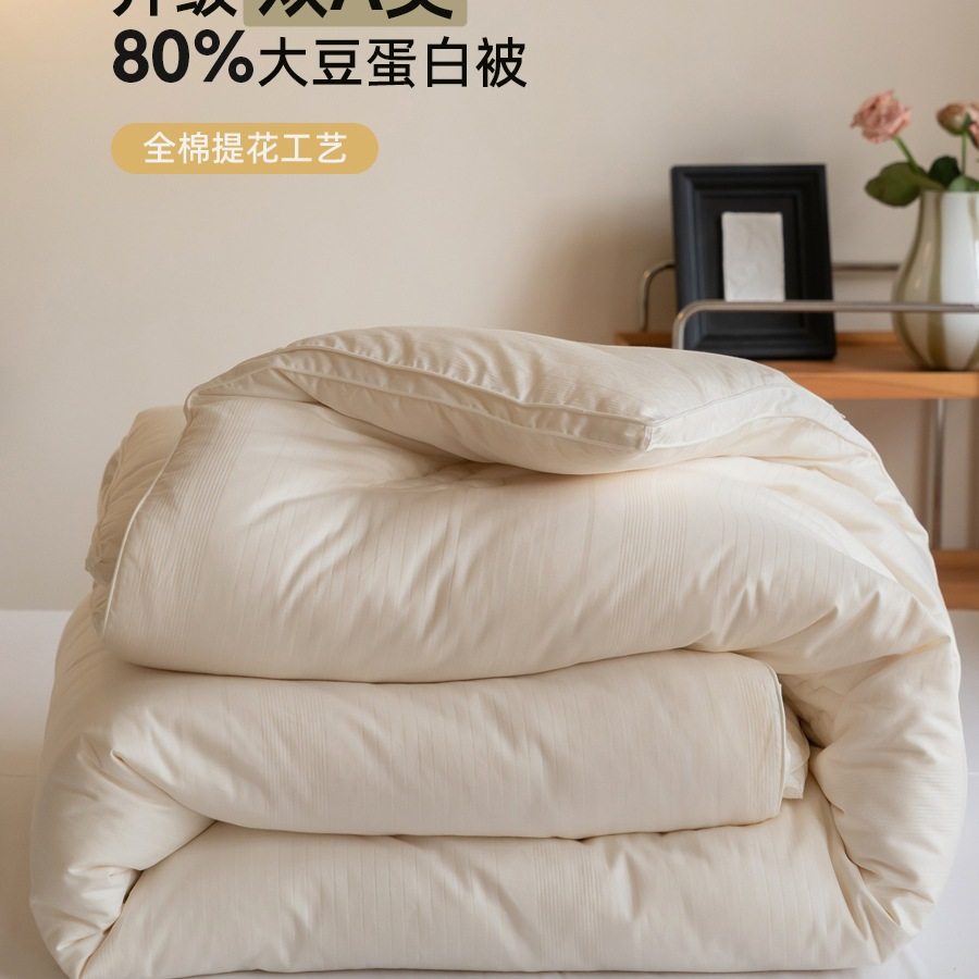 母婴A类原棉无染大豆纤维被春秋被子保暖冬被加厚棉被大豆被抗菌