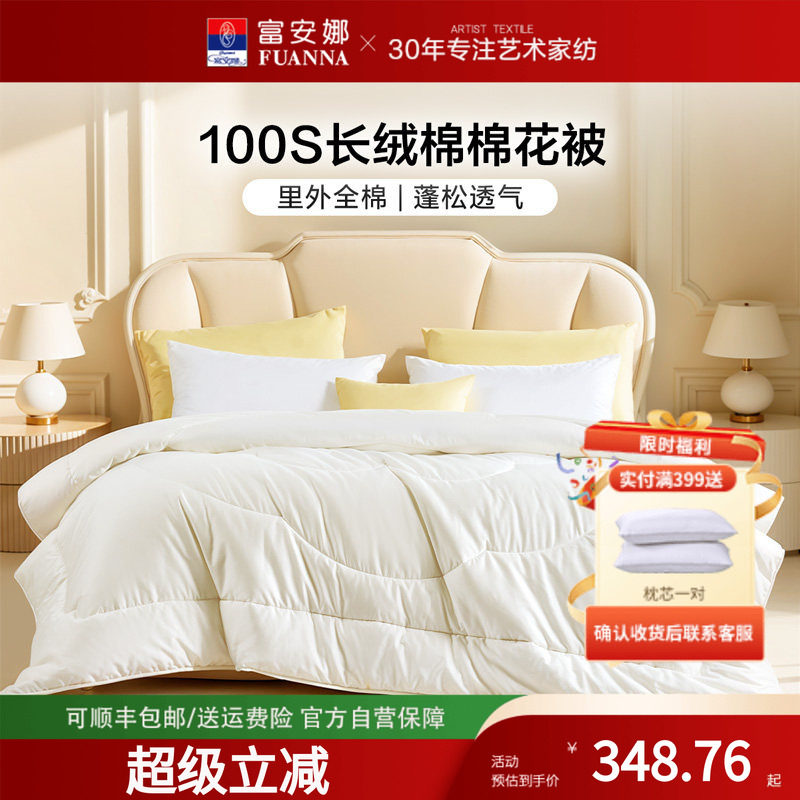 富安娜家纺棉花被100支A类纯棉里外全棉四季被芯被子保暖冬被加厚