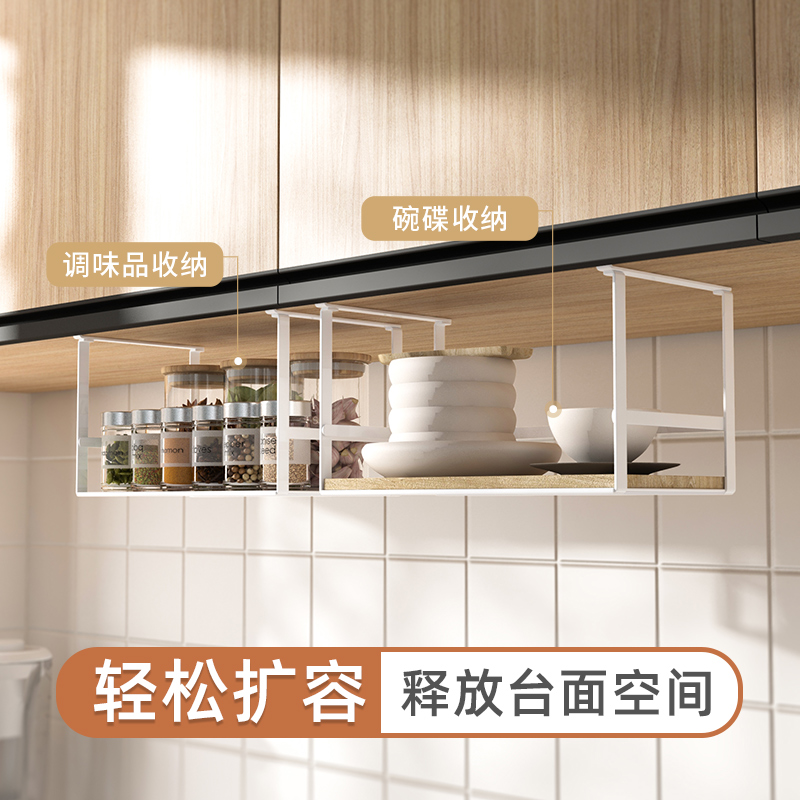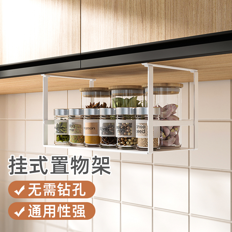 厨房置物架 调味料收纳架挂式吊柜下挂篮多功能省空间 橱柜下挂架