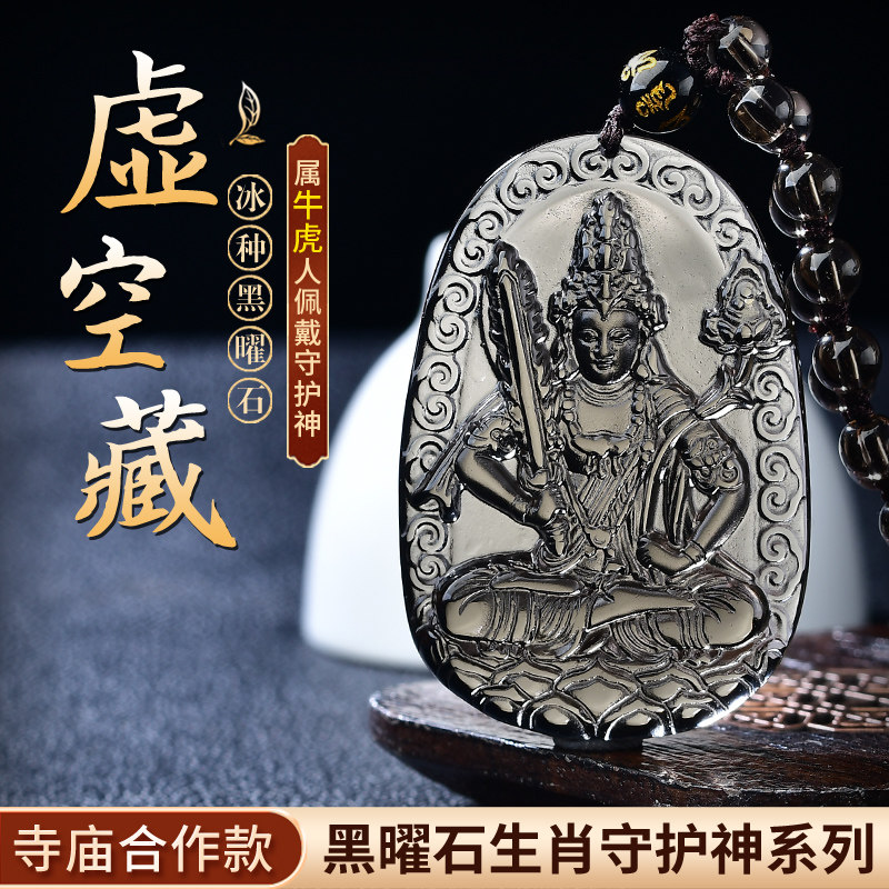 新款冰种黑曜石属牛虎守护神虚空藏菩萨佛像本命佛护身符普萨吊坠