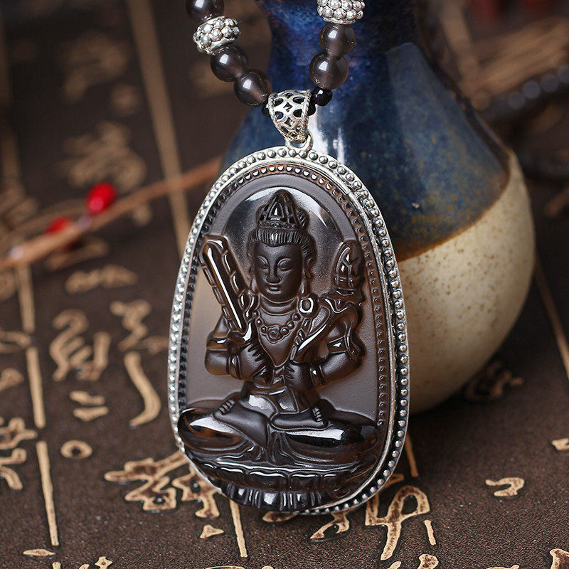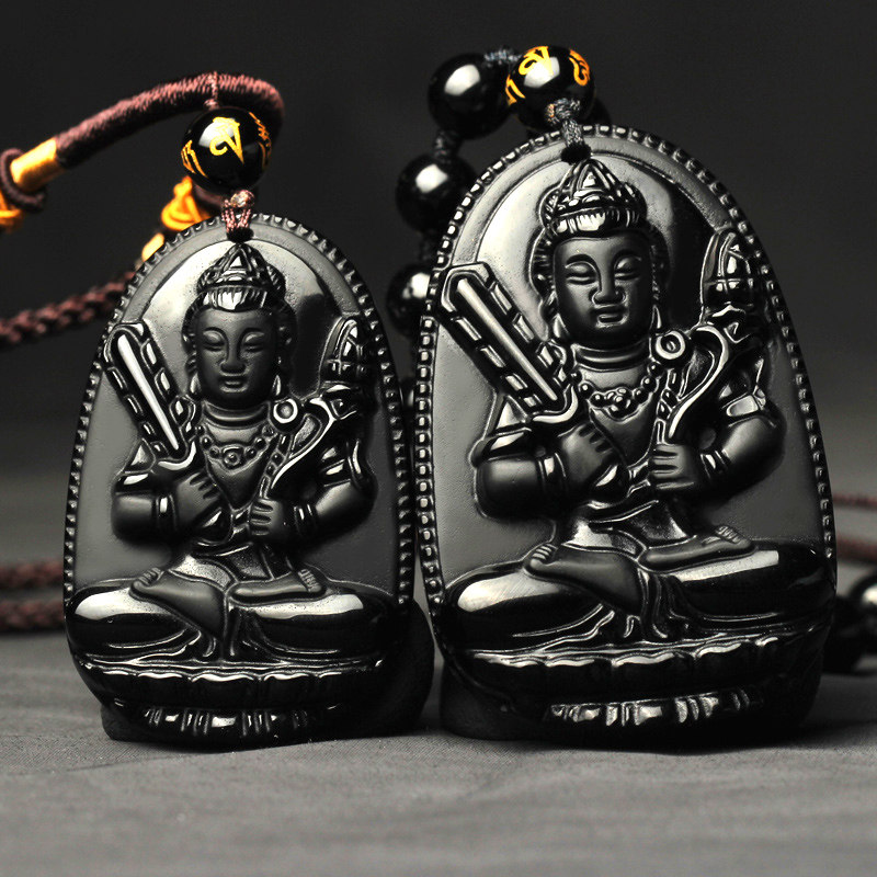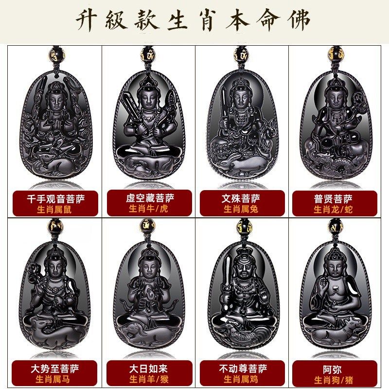 冰种黑曜石本命佛吊坠男女款字真言男项链普贤菩萨虚空藏菩萨属虎