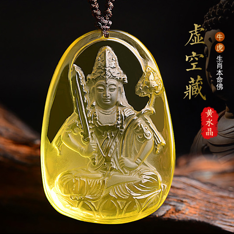 天然黄水晶虚空藏菩萨吊坠水晶生肖属牛虎本命佛守护神本命年项链