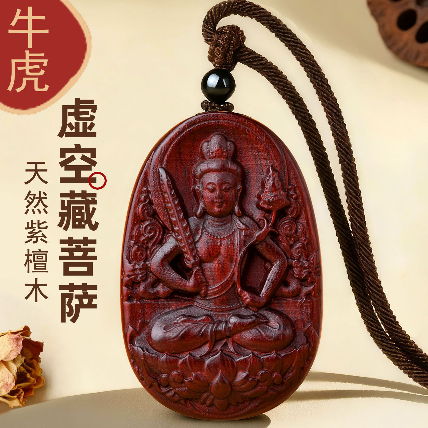 虚空藏菩萨属牛属虎本命佛吊坠紫檀木十二生肖护身符挂件项链男女