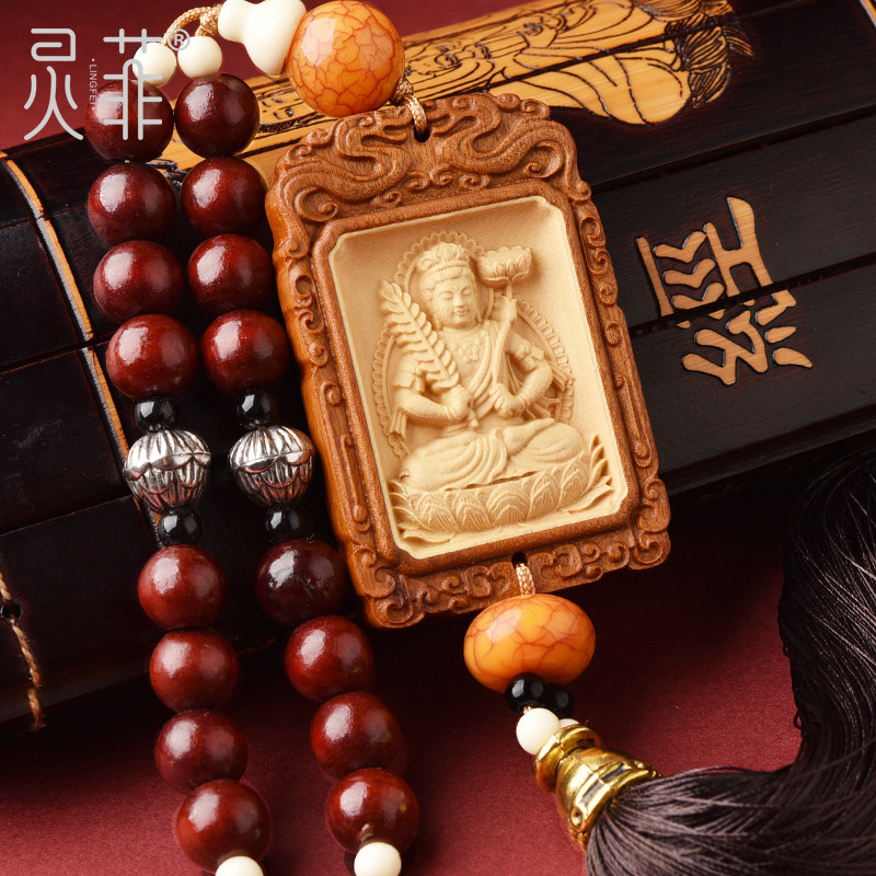 木质本命佛吊坠虚空藏大日如来普贤文殊菩萨千手观音生肖女属牛虎