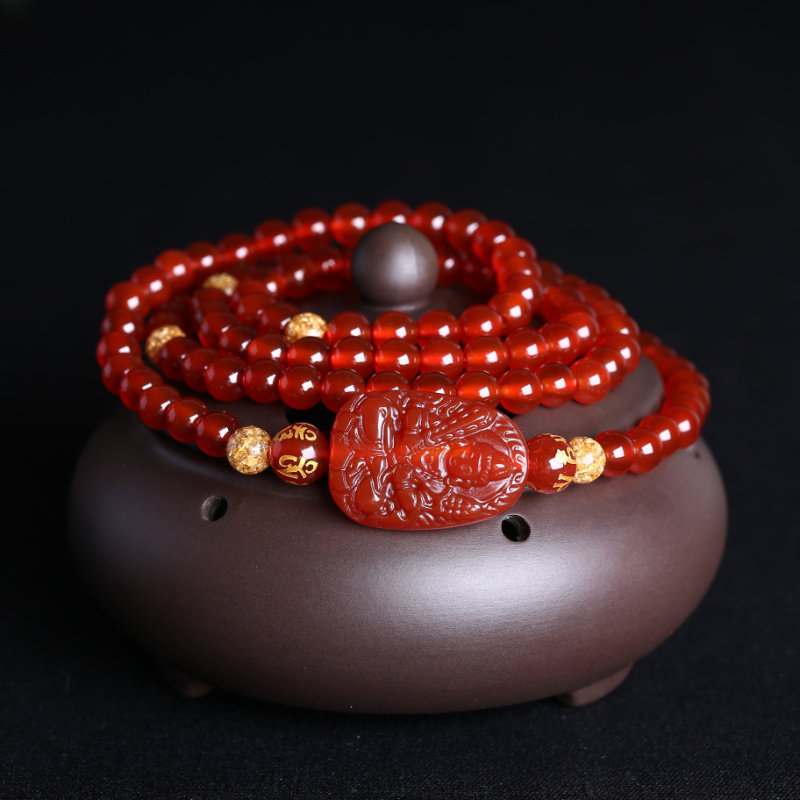 2026年红玛瑙虚空藏菩萨手链属牛属虎本命佛守护神108颗佛珠手链