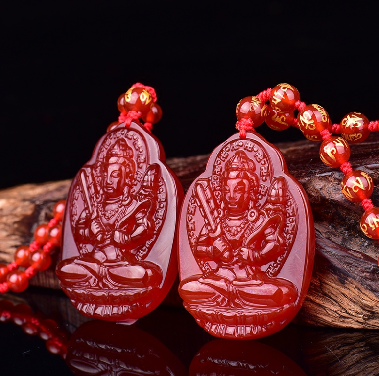 2026年红玛瑙花边守护神属牛虎本命佛红玛瑙虚空藏菩萨吊坠项链