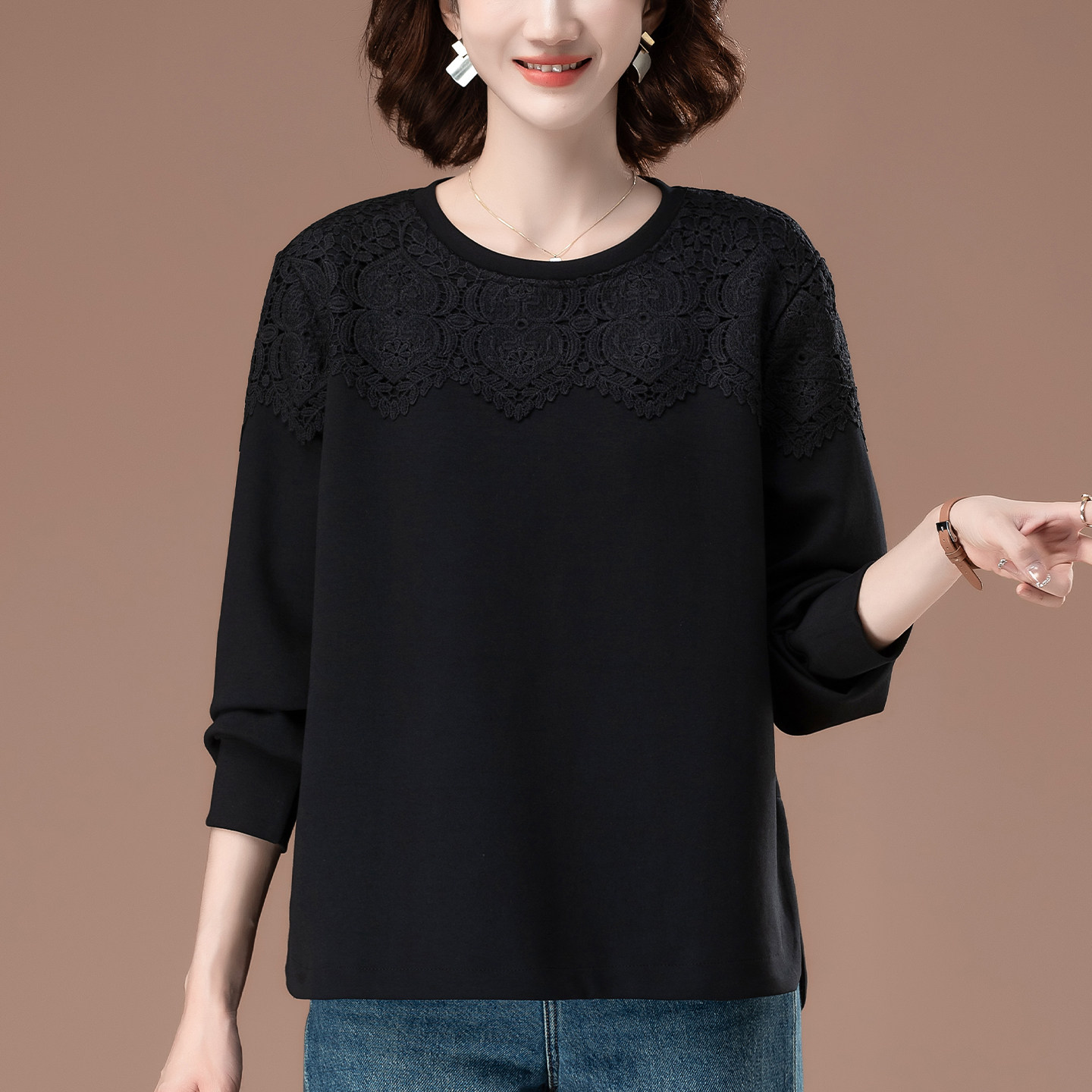 - 大码女装打底衫蕾丝