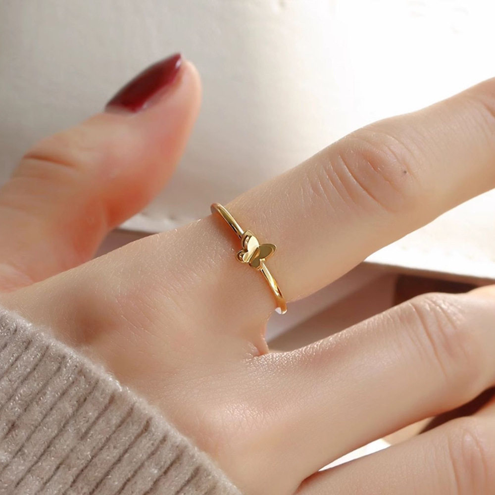 新款迷你双层蝴蝶素圈戒指个性食指戒指女简约百搭高级感指环饰品