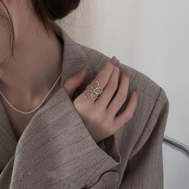 小众设计夸张雏菊镂空花朵食指戒指女简约高级感开口指环时尚百搭