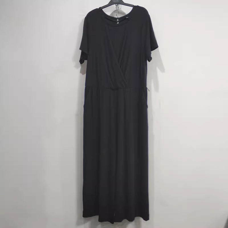 外贸原单特大码连体裤黑色女春夏时尚收身显瘦斜襟短袖阔腿裤九分