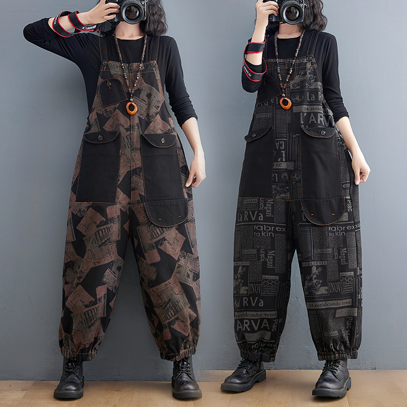 文艺斜纹全棉背带裤女秋季宽松大码复古工装吊带连体裤休闲垮裤潮