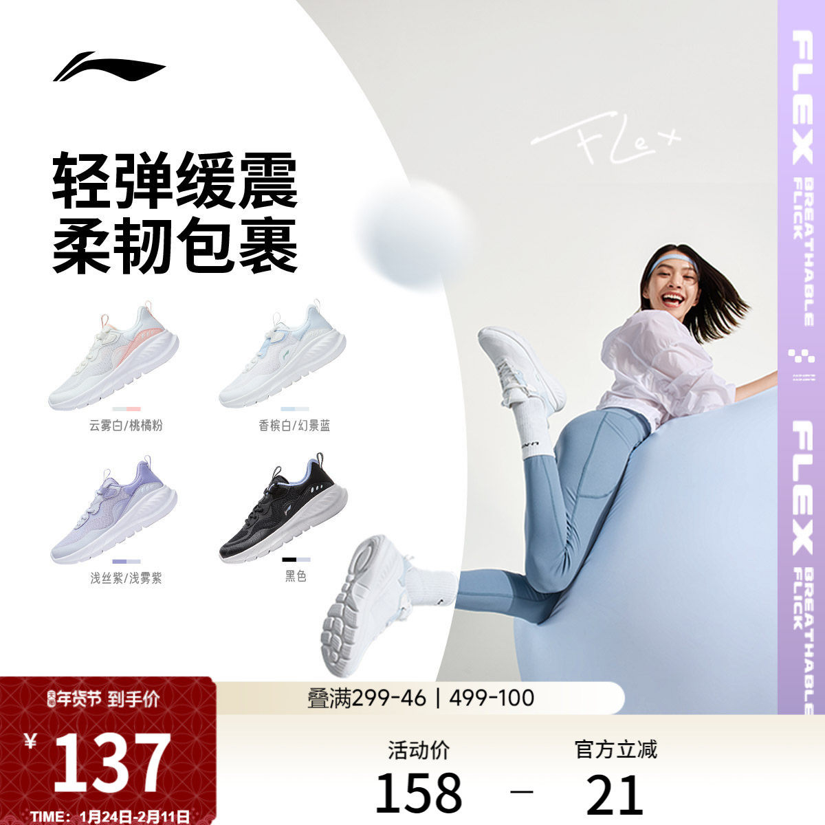 李宁易适flex丨 跑步鞋女款健身跳绳轻便透气减震软底休闲运动鞋