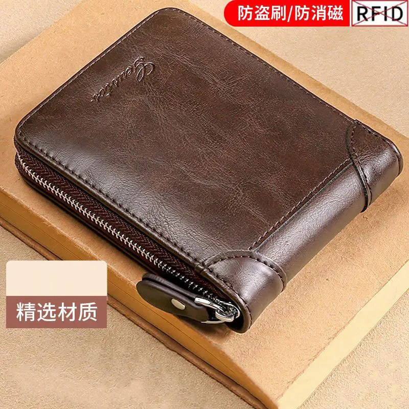 2024新款男款皮夹钱夹钱包短款真软皮拉链多功能大容量一体卡包