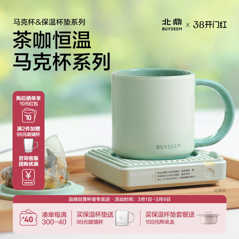 北鼎陶瓷马克杯情侣杯保温加热杯垫热牛奶杯子暖杯垫咖啡杯茶杯女