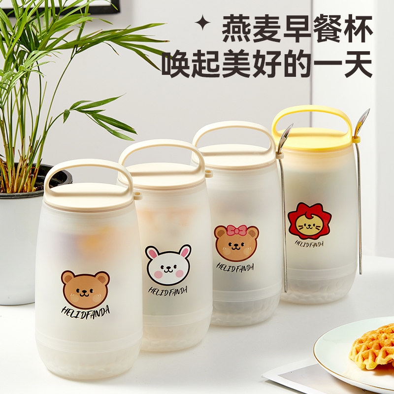 早餐杯带盖勺粥杯可微波加热牛奶杯便携外带随手杯燕麦杯酸奶杯子