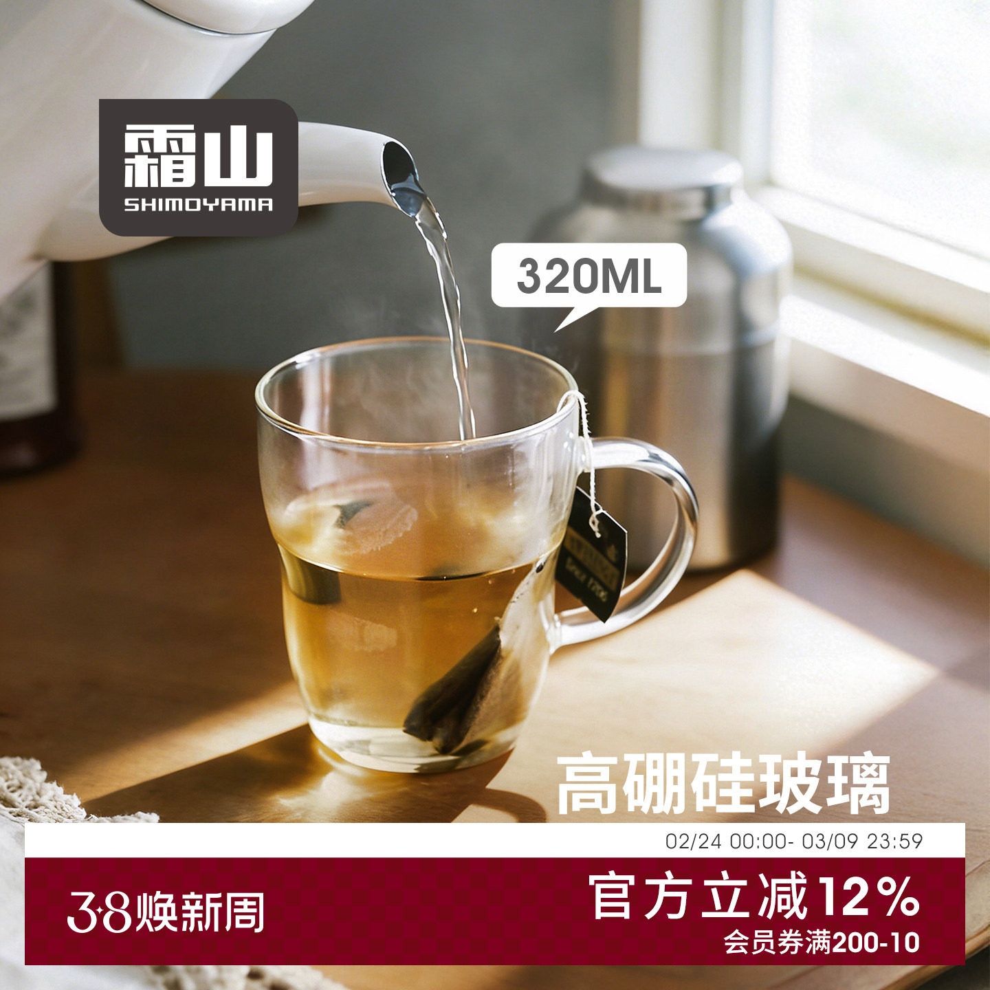 霜山高硼硅玻璃杯耐热水杯咖啡杯泡茶杯可微波热牛奶杯透明马克杯