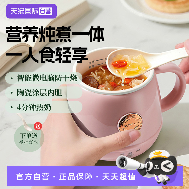 一人食炖煮杯电热烧水杯便携式旅行电煮杯小型加热杯热牛奶杯迷你
