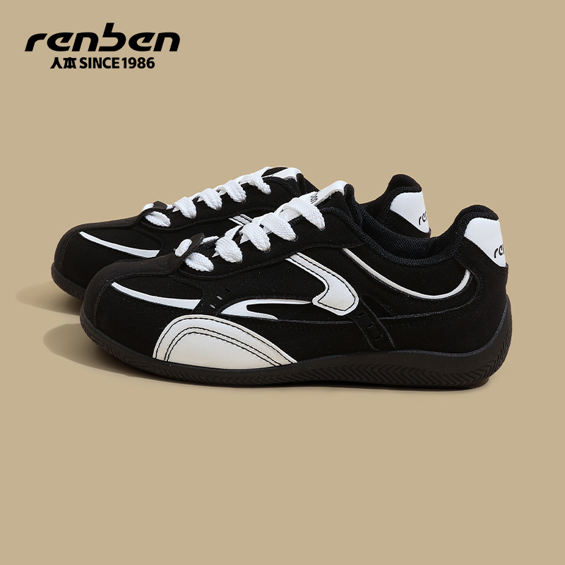 人本黑色德训鞋女2025春秋季新款时尚百搭学生平底轻便休闲运动鞋