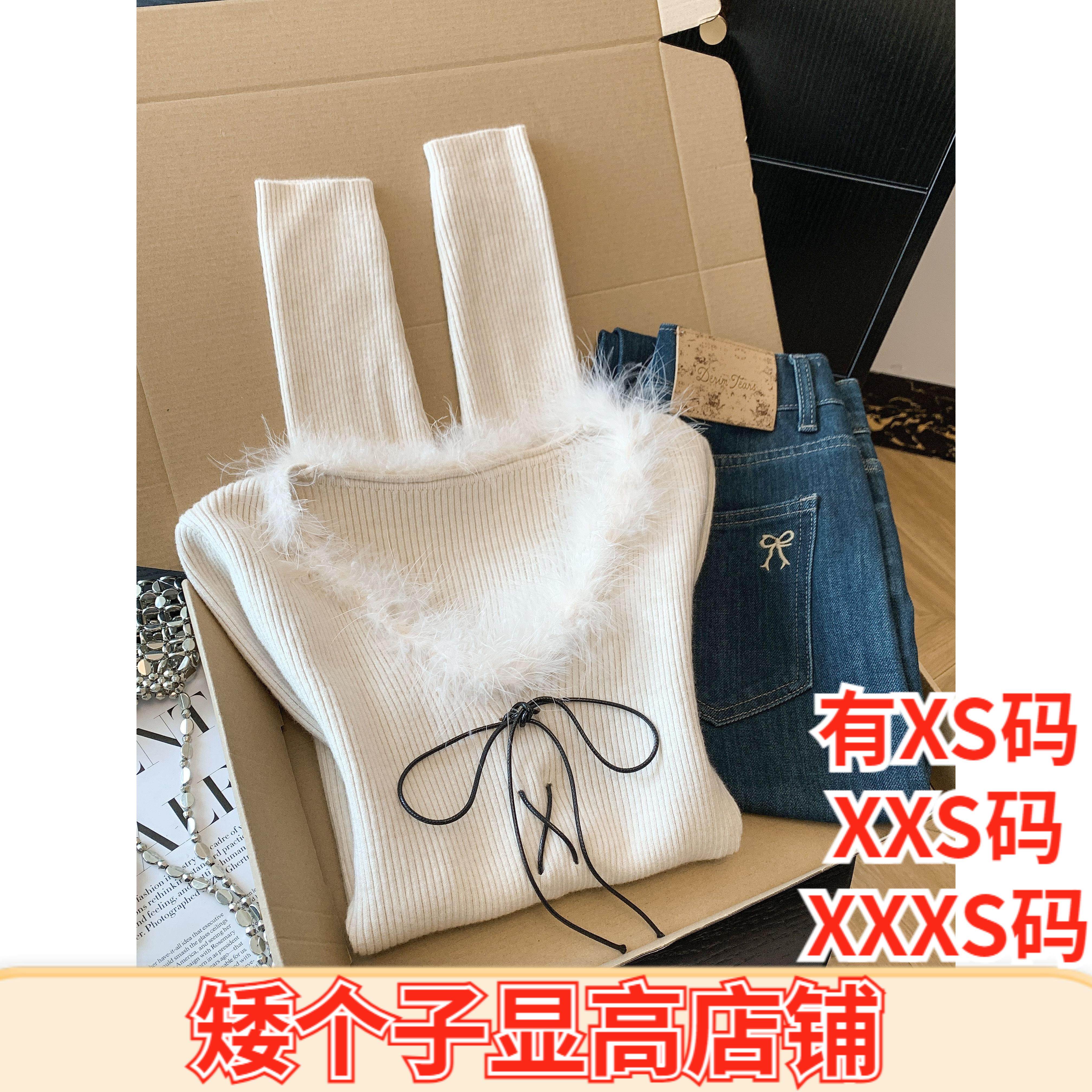 加小码XXXS冬装女装小个子150cm显高针织衫撞色蝴蝶结系带毛衣女